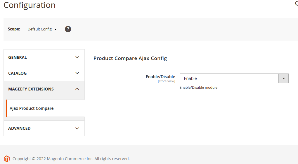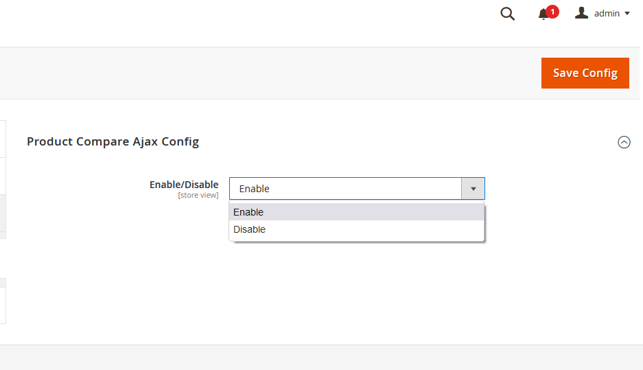 Login into the admin panel then Go To Stores >> Configuration >> Mageefy Extensions >> Ajax Product Compare and here you can see all the configuration.