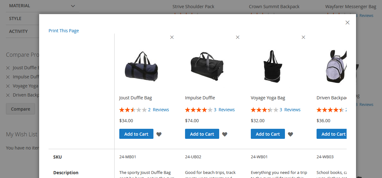 Ajax Compare Magento 2 Extension enables your online store visitors to add products to Compare list without reloading the page.