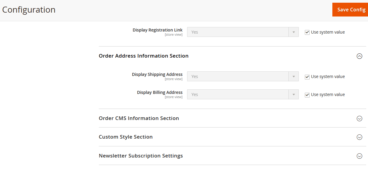 Order Info Configuration -