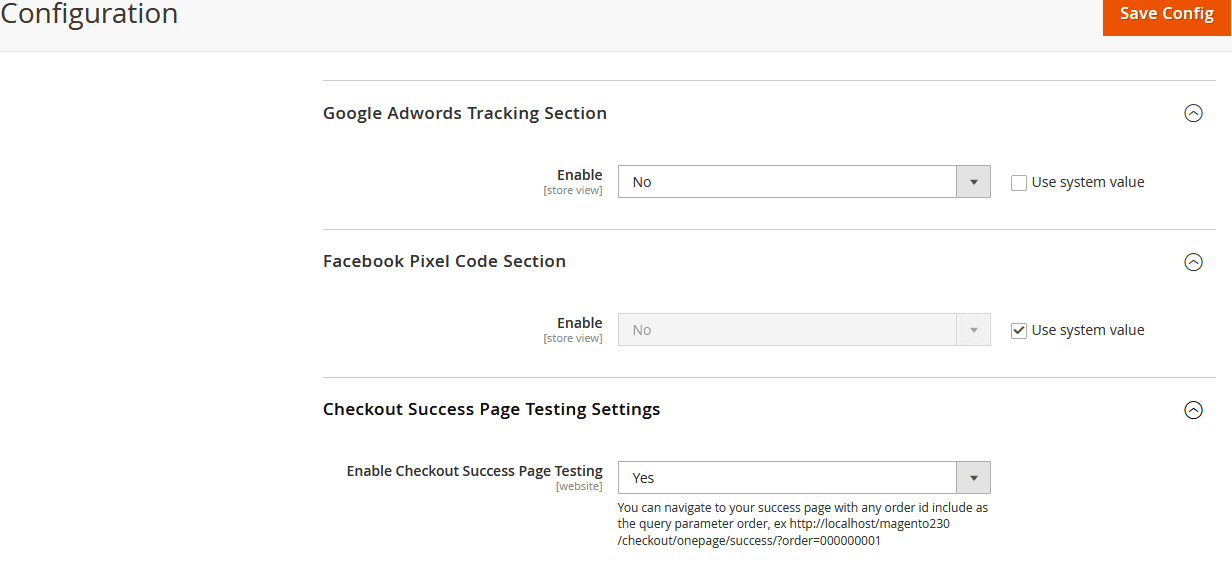 - Then click on "Mageefy Extensions -> Checkout Order Success Page", here you will find all the global settings for Checkout Order Success Page