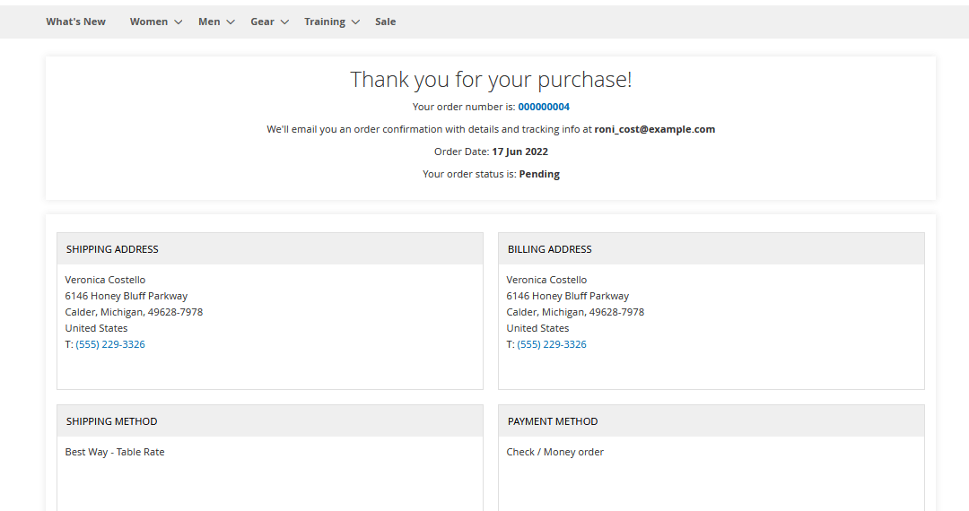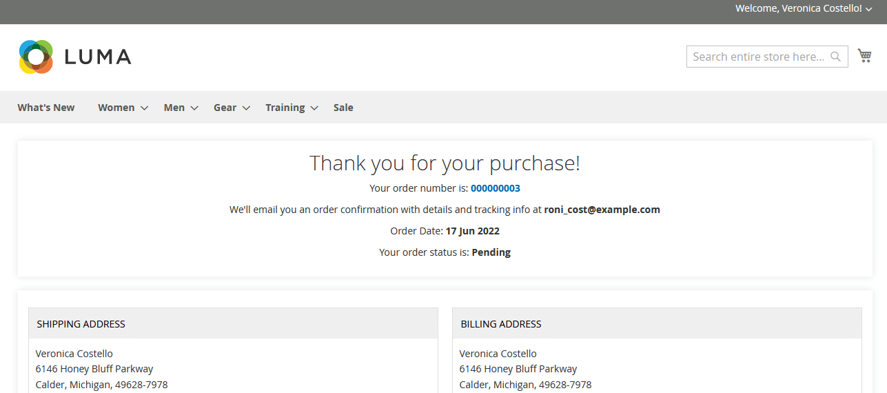 - Modern responsive Magento 2 checkout order success page.