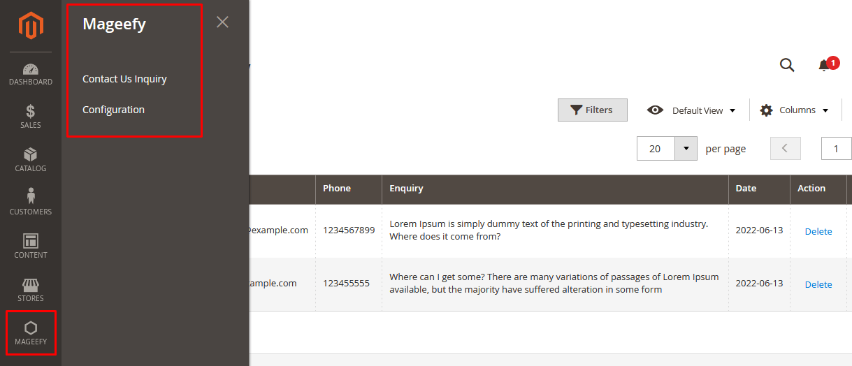 Login into the admin panel then Go To Mageefy >> Contact Us Inquiry and here you can see all the contact inquiries.