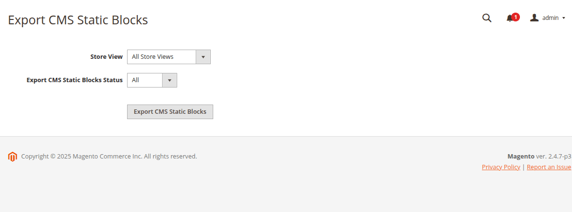 By default, Magento does not provide any built-in functionality for bulk importing or exporting CMS static blocks. This limitation forces store admins to manually create or edit each block, which is time-consuming and prone to human error—especially when managing content across multiple stores or migrating data between environments.