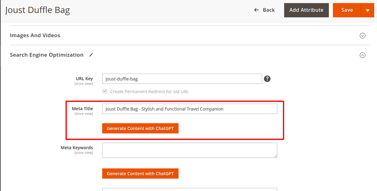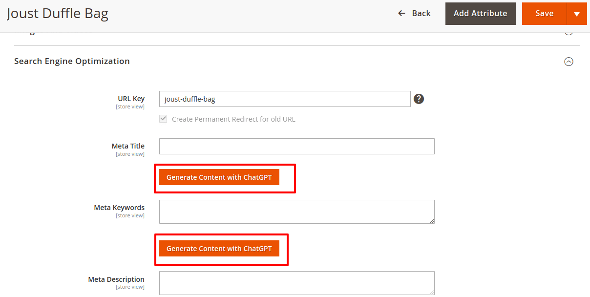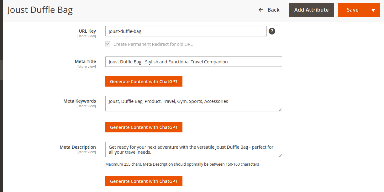 - Generate SEO-friendly content in Magento 2 using ChatGPT.
