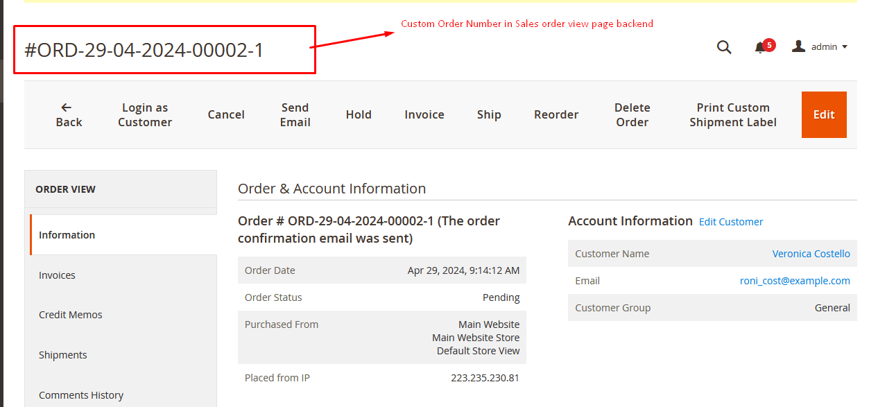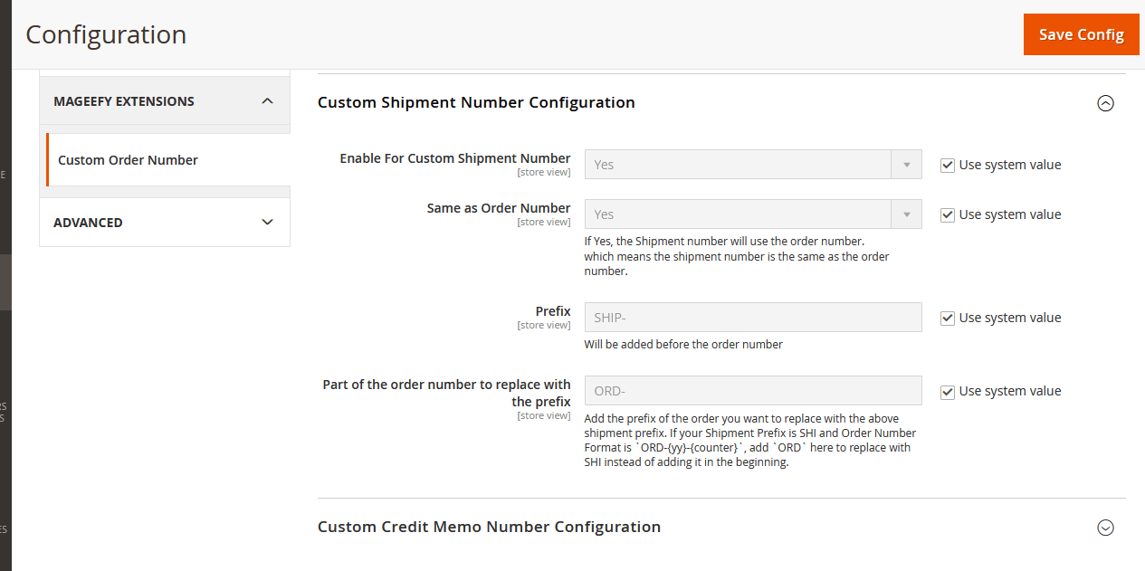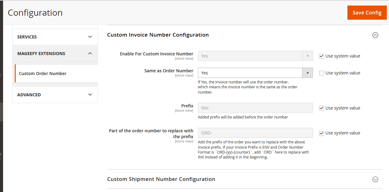 - Admin can also customize shipping, invoice, and credit memo IDs.