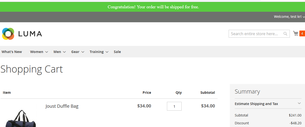 This extension will display a free shipping message bar to inform customers about both the minimum cart total to get free shipping and the remaining amount to reach the limit. Admin can easily configure this extension as per their need from the back-end.