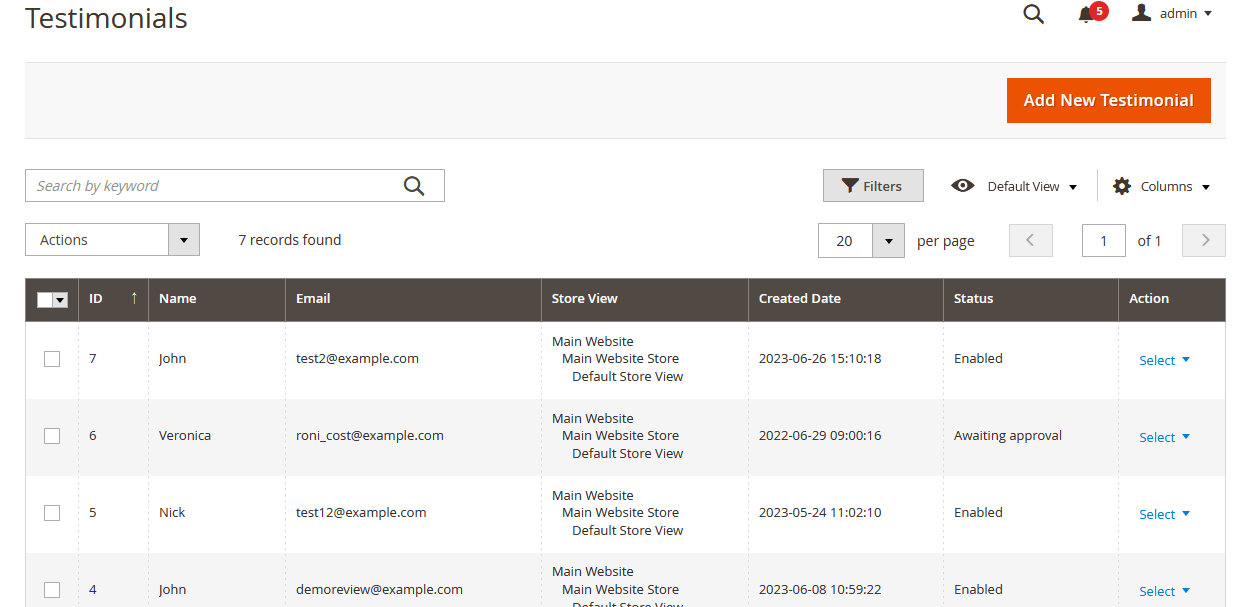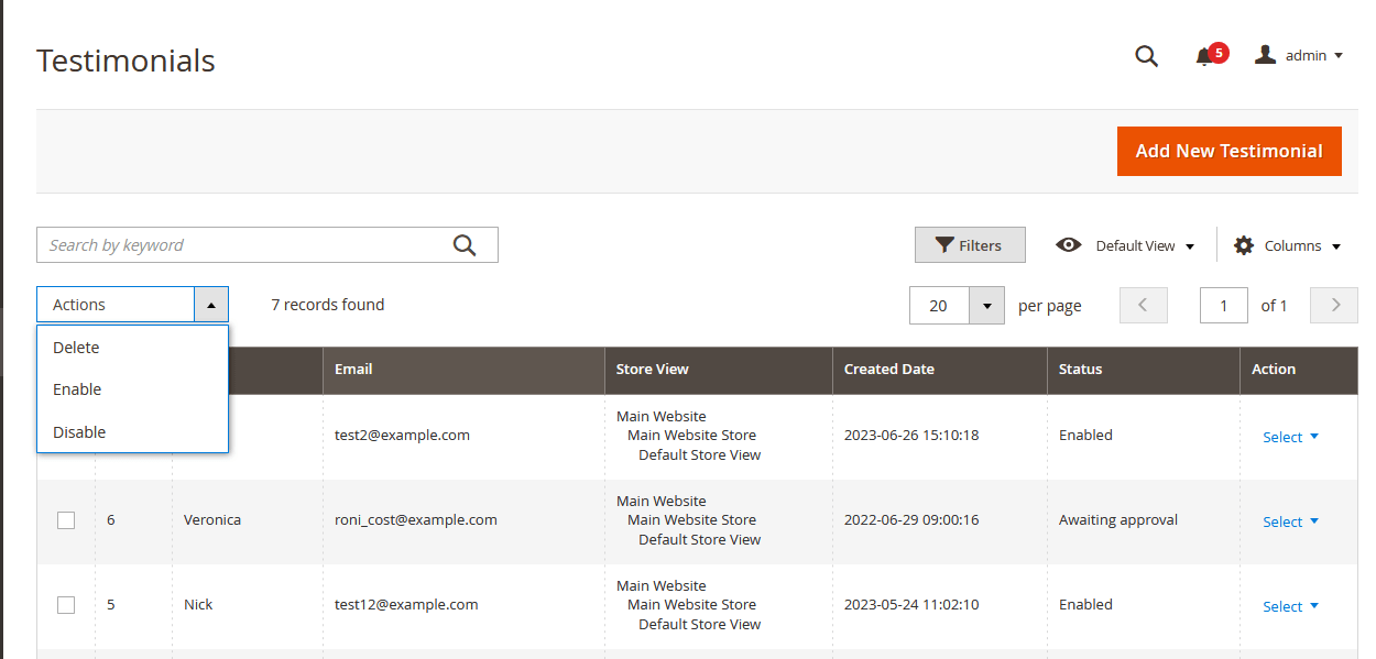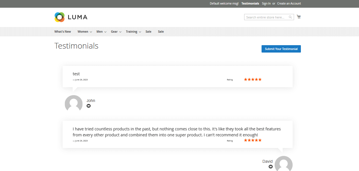 With the help of this extension, Customers can submit testimonials directly from the frontend of your website using a submission form. They can provide their name, email, ratings, and detailed feedback about their experience with your products or services. The extension enables you to review and moderate testimonials before they are published on your website. This helps you maintain the quality and authenticity of the testimonials displayed to your visitors. Customers can rate their experience and provide detailed reviews, offering valuable insights to potential buyers. This feature helps build trust and confidence among your visitors.