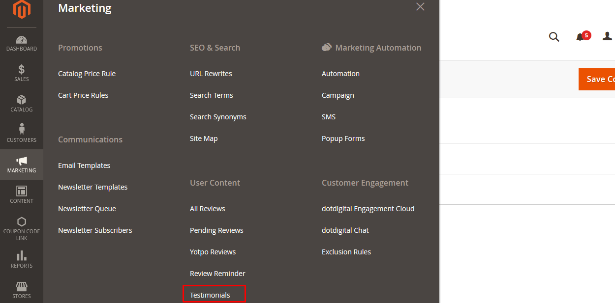 Go To Marketing >> User Content >> Testimonials and here you can see all the testimonials list.