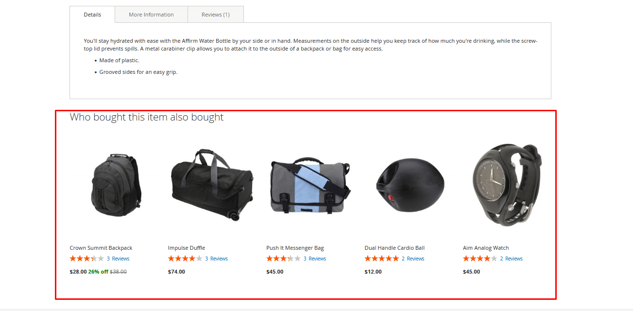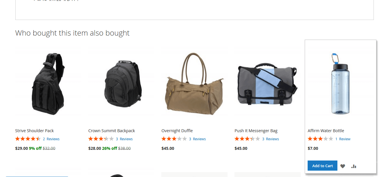- Displays a section on individual product pages showcasing products that were commonly purchased along with the currently viewed item.