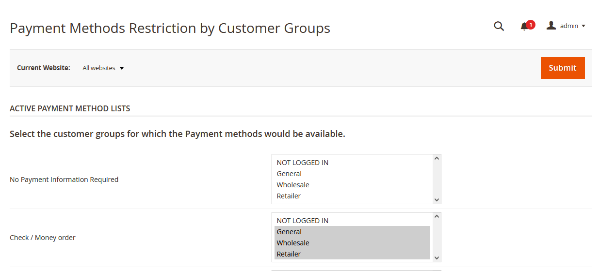 - The admin can easily assign the payment methods to a particular customer group according to the customer group.
