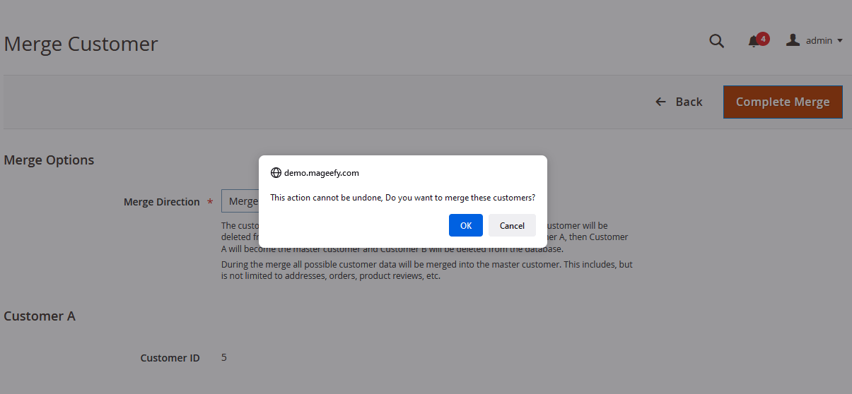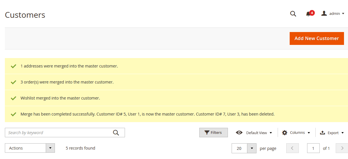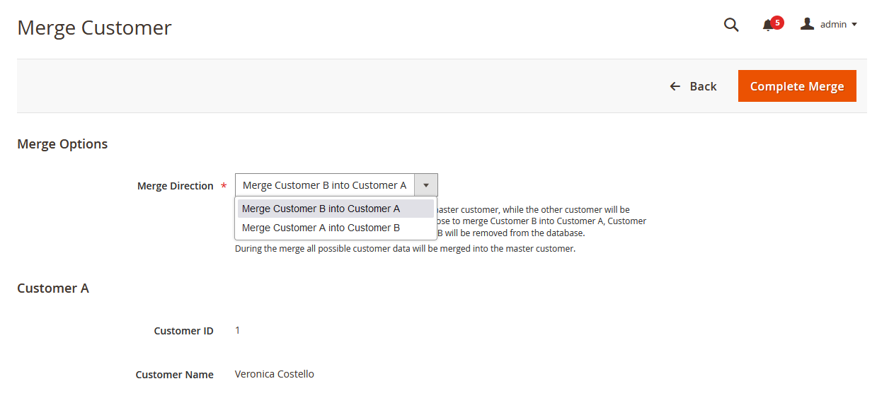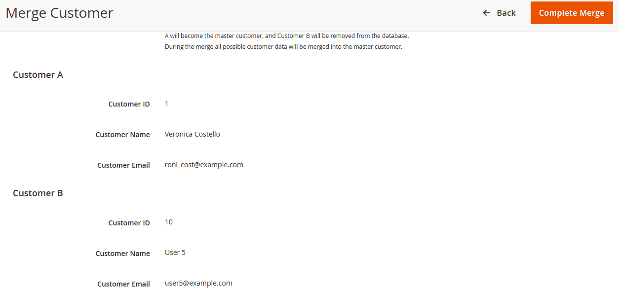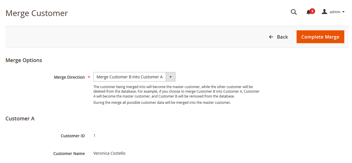 By default, Magento does not provide this type of feature in the backend. With the help of this Merge Customer Accounts Extension for Magento 2, you can merge any customer accounts together. For example, you could use this extension to merge two customer accounts together into one. Sometimes this happens when old orders using an email address no longer in use by the customer exist and then the customer has purchased again recently with a new email address and wants to combine order history and other information together into the new account.