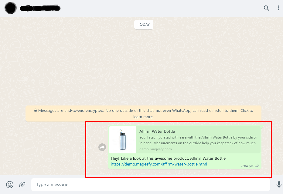 The WhatsApp product share feature allows the users to share product link through WhatsApp when browsing the store through a mobile device. When the user clicks on the WhatsApp share button on the product detail page it redirects the user to the WhatsApp contact list (if WhatsApp installed) then the user can share that product information with page links. In this extension, we also allowed the custom message with product page URL. Admin can enable Whatsapp Share button on the Magento product details page from the backend easily.