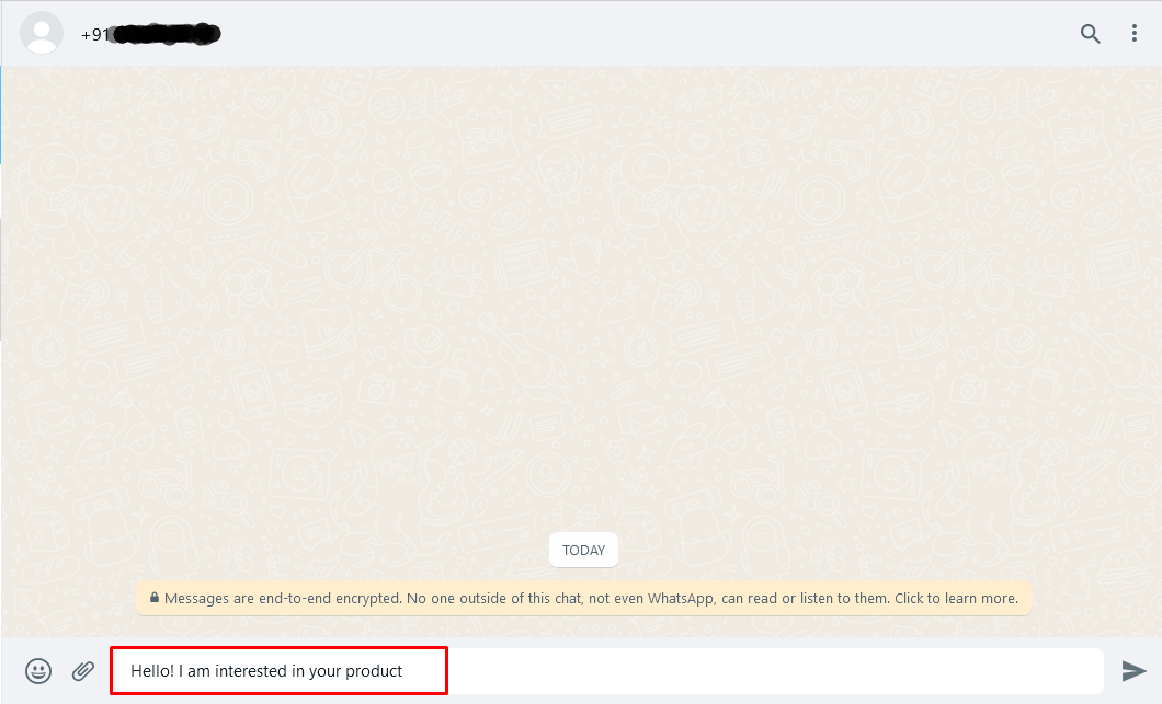 - Set customized default chat message to start WhatsApp chat when someone contacts admin.